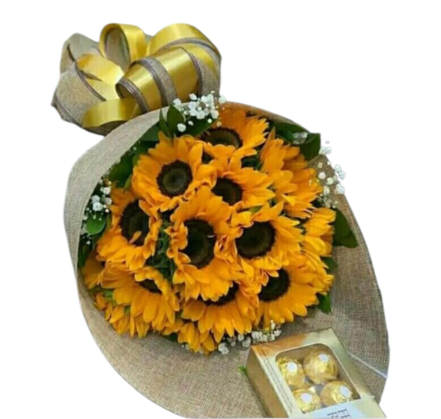 Buquet de girasoles y ferrero rocher